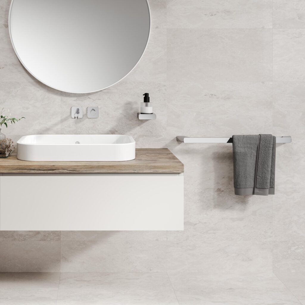 Behändig handdukshängare i 45 cm brett utförande. Häng dina handdukar snyggt på denna handdukstång. Levereras med skruv och plugg för infästning, Designad i Nederländerna med 15 års garanti.