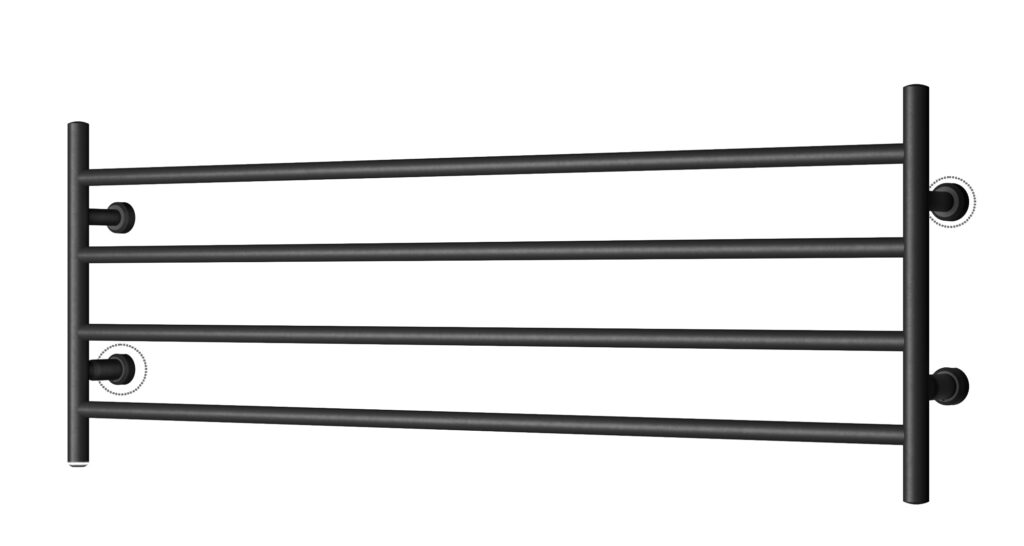 Denna handdukstork är eluppvärmd med kabel (ej vätskefylld), det ger dig möjligheten att placera handdukstorken upp eller ner. Anslutning kan därmed göras i antingen höger nedre/vänster övre ben (standard) eller vänster nedre/höger övre ben. Strömbrytare med timerfunktion i samma ben som elasnlutning. Elanslutningen är dold.