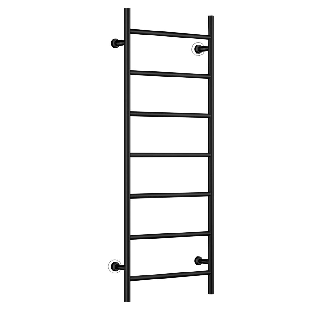 Denna handdukstork finns i tre olika färger – läcker mattsvart (glansgrad 12-23), vit och kromad. Handdukstorken kan även beställas i valfri RAL färg mot tillägg.
